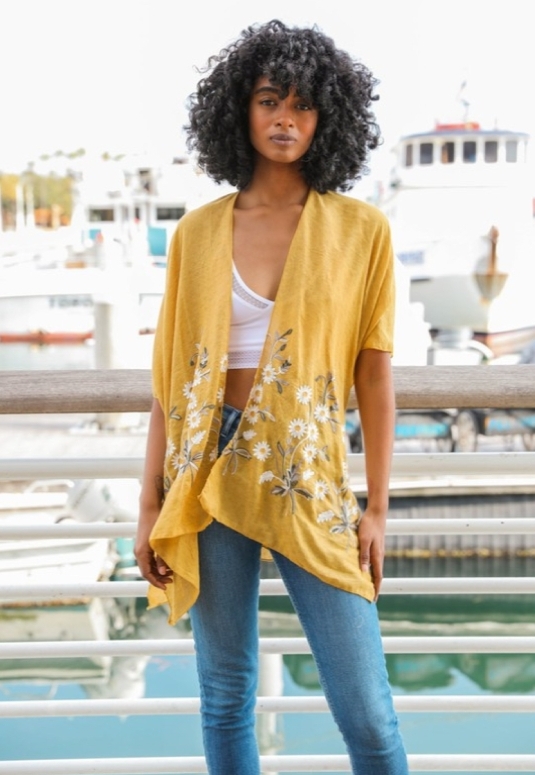 Add a little Springtime to your wardrobe with this Golden Floral Daisy Boho Kimono